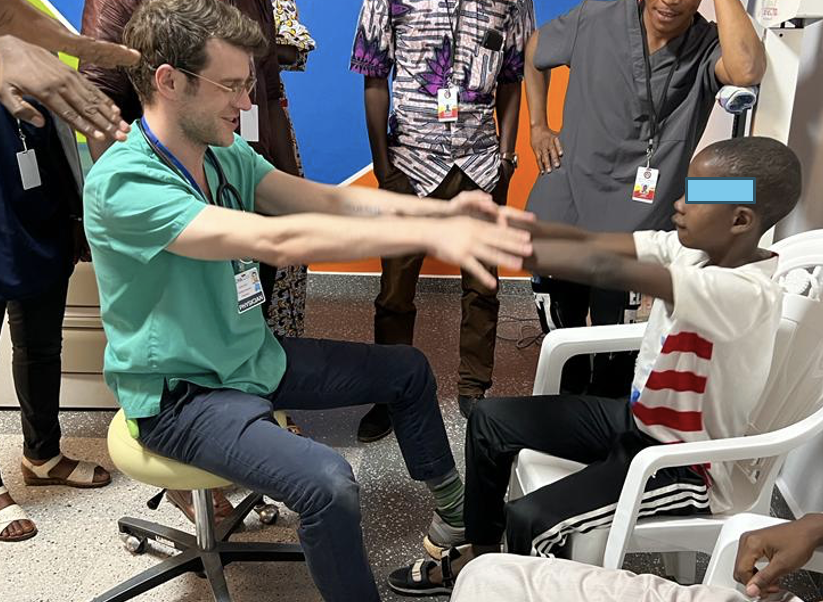 Over the rest of the day, their staff watched me diagnose patients with stroke, psychosis, neurological complications of infectious diseases, help control seizures or improve the functioning of patients suffering from cerebral palsy. Every now and then I’d pause to explain what something on the physical exam meant, note what I was seeing in the shades of gray of a CT, or discerning from among the squiggly lines of an EEG. The picture at the top of this email is the staff watching me make a game out of the neurological exam with a patient who had developed hyperactivity, impulsivity, compulsiveness, and tics after an infection with Trypanosomiasis (the “African sleeping sickness”), but who was still remarkably intelligent, loved the US, and told me he wanted to be a doctor someday.